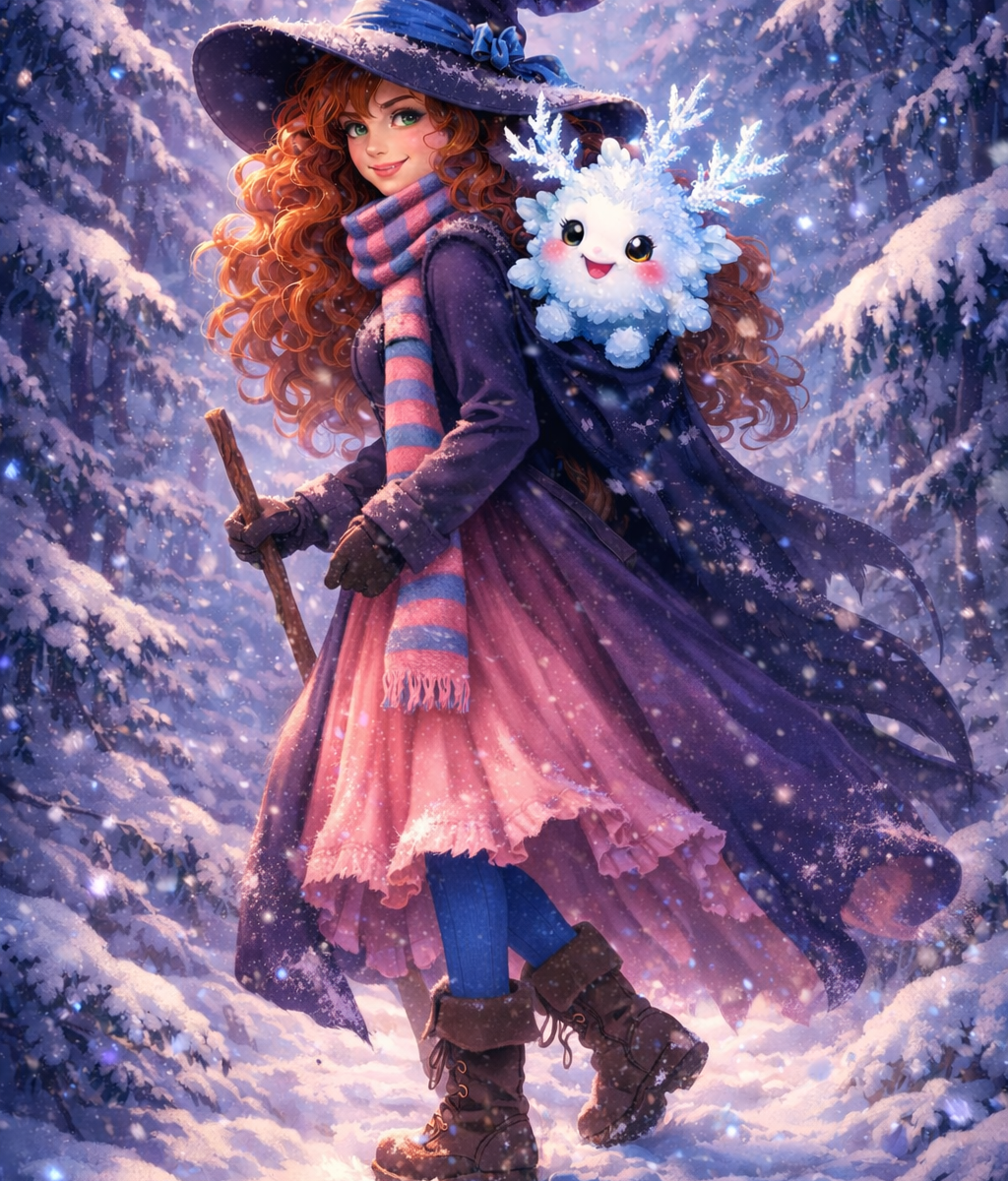 „Urrgh. Ist das kalt! Wie wenig ich doch diesen ollen Winter mag!“ Die kleine Hexe Isolde stand bibbernd vor ihrem Hexenhaus, die Schultern bis zu den Ohren hochgezogen. Ihre Nase verschwand in dem langen, kuscheligen Schal, den sie sich vier Mal um den Hals gewickelt hatte. Der Winter hatte ihre Beschwerde wohl gehört, denn er schickte einen extra eisigen Wind durch die kahlen Äste der Bäume zu dem zeternden Hexlein hinunter. „Froschspucke und Fliegendreck! Das war jetzt aber wirklich gemein!“, rief Isolde entsetzt und hielt schnell ihren rosaroten Rock über der himmelblauen Strumpfhose fest. Dabei hatte sie sich so weit vorgebeugt, dass die Enden des moosgrün und veilchenblau geringelten Schals nun über ihre Stiefelspitzen hingen. Es brauchte nur einen kleinen Trippelschritt, um unsere kleine Hexe ins Stolpern zu bringen…