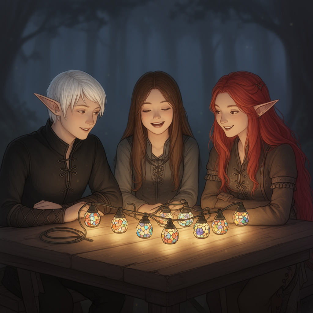 „Die letzten zehn Schneebälle hätte nun wirklich nicht sein müssen!“, brachte Igran bibbernd hervor und schüttelte kräftig seinen Kopf. Zwischen den hellen Haarsträhnen des Dunkelelfen waren die weißen Flocken fast nicht zu sehen gewesen. Nun flogen sie als kalte Tropfen in alle Richtungen. Mit einem Kichern hielten sich Marlene und Alsuna schützend einen Arm vor die von der winterlichen Kälte und der wilden Schneeballschlacht geröteten Wangen. Über den Ärmel ihres tannengrünen Wollmantels hinweg fragte Marlene mit gespielter Entrüstung: „Wer hat denn angefangen?!“ Igran grinste schief. „Vielleicht ist mir ja nur etwas aus der Hand gerutscht.“ „Ha!“ Alsuna trat an den Dunkelelfen heran. Ihr Blick glitt über die letzten Schneereste auf seinen Schultern, während sie ihm selbstzufrieden erklärte: „Ein guter Krieger weiß, wann es sich zu kämpfen lohnt.“ Der Mund der Lichtelfe verzog sich zu einem frechen Grinsen, als sie weiter erklärte: „Und wann er es lieber gleich lassen sollte, weil ihm der Gegner weit überlegen ist.“ „Pfft! Überlegen!“ Igran hob anklagend eine Augenbraue. „Ihr habt Magie gebraucht! Das ist geschummelt!“ Marlene ließ einen mit goldenen Fäden durchzogenen Schneeball vor sich tanzen. „Vielleicht… Aber so hat es viel mehr Spaß gemacht!“